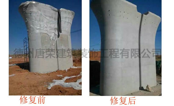 混凝土的缺陷形式很多,比如蜂窩、露筋、麻面等,這些都是小的缺陷,修補及修飾對我公司來說是不成問題,修飾部分的混凝土表面與大面沒有大的色差。主要的缺陷是漲模。這種缺陷的修飾需要大量的人工及材料,還需要技術水平高的工人來操作。我公司專業修補混凝土的蜂窩、麻面、裂縫、露筋、露震、錯臺、局部破損等混凝土缺陷。